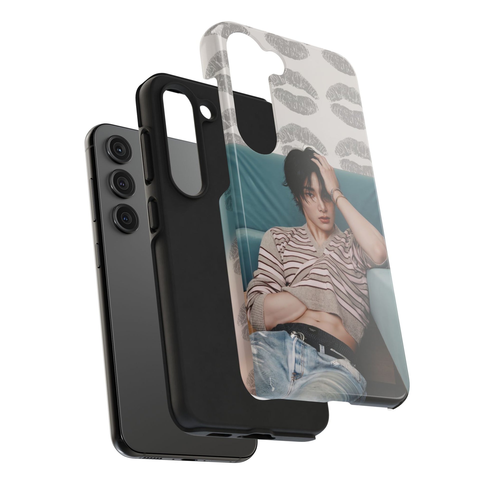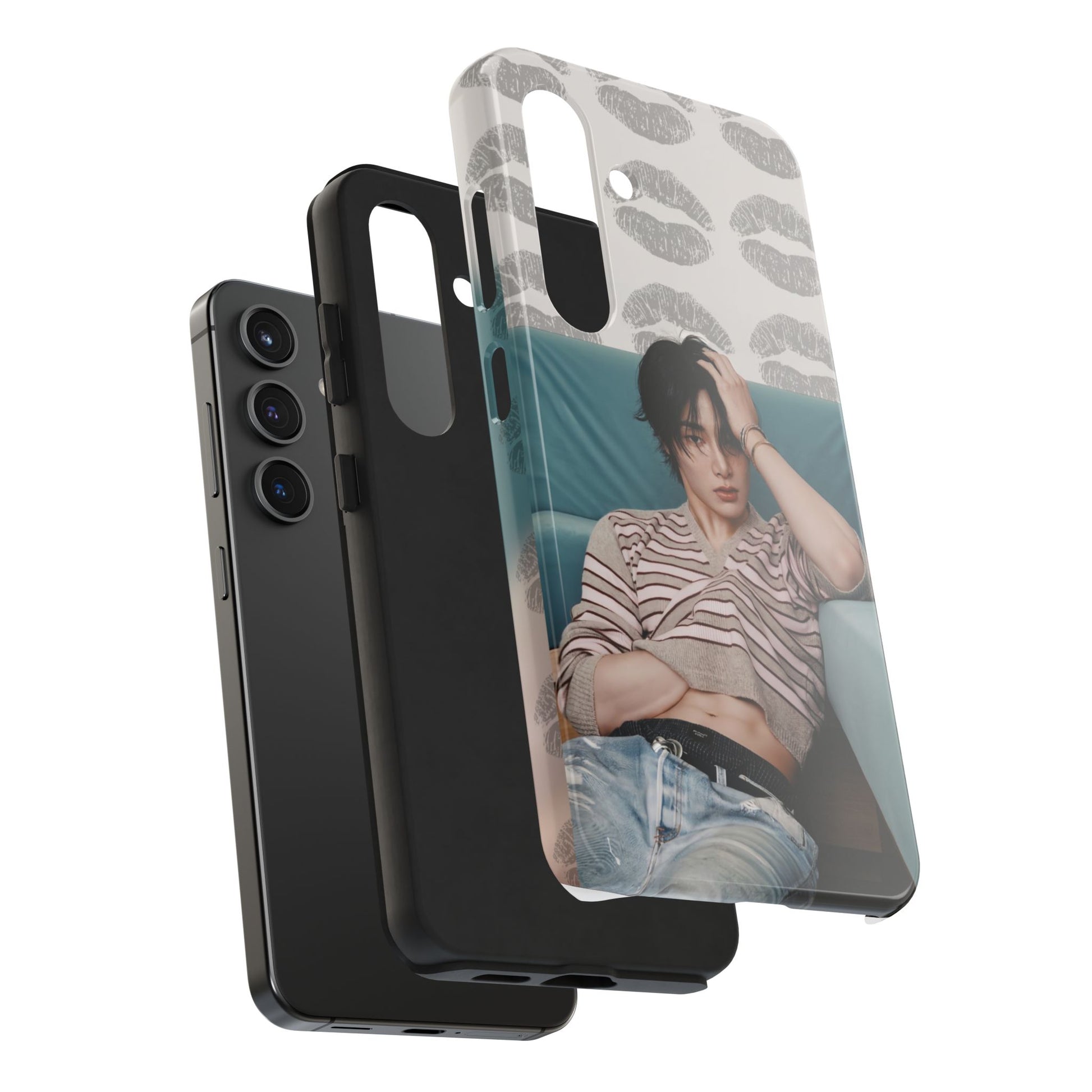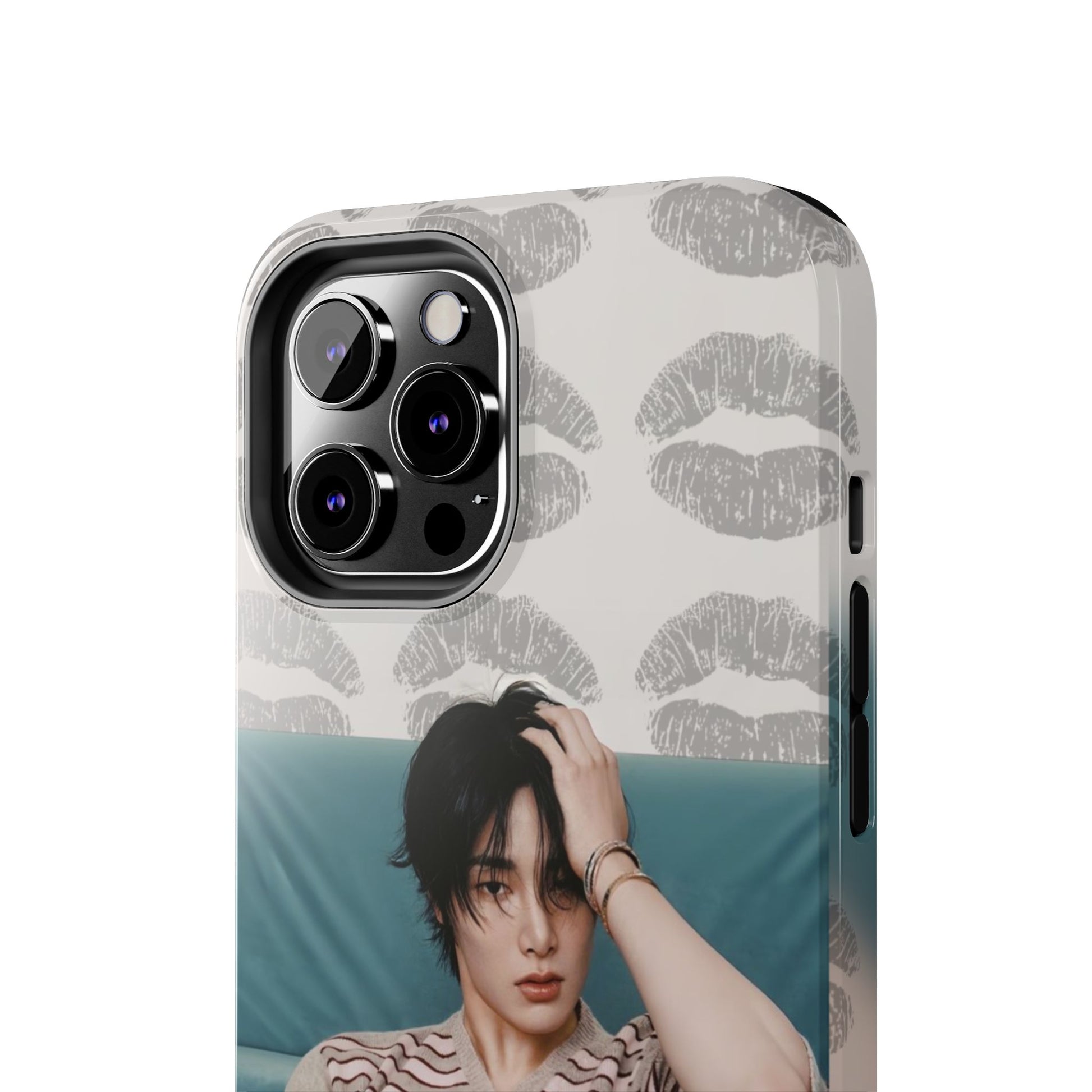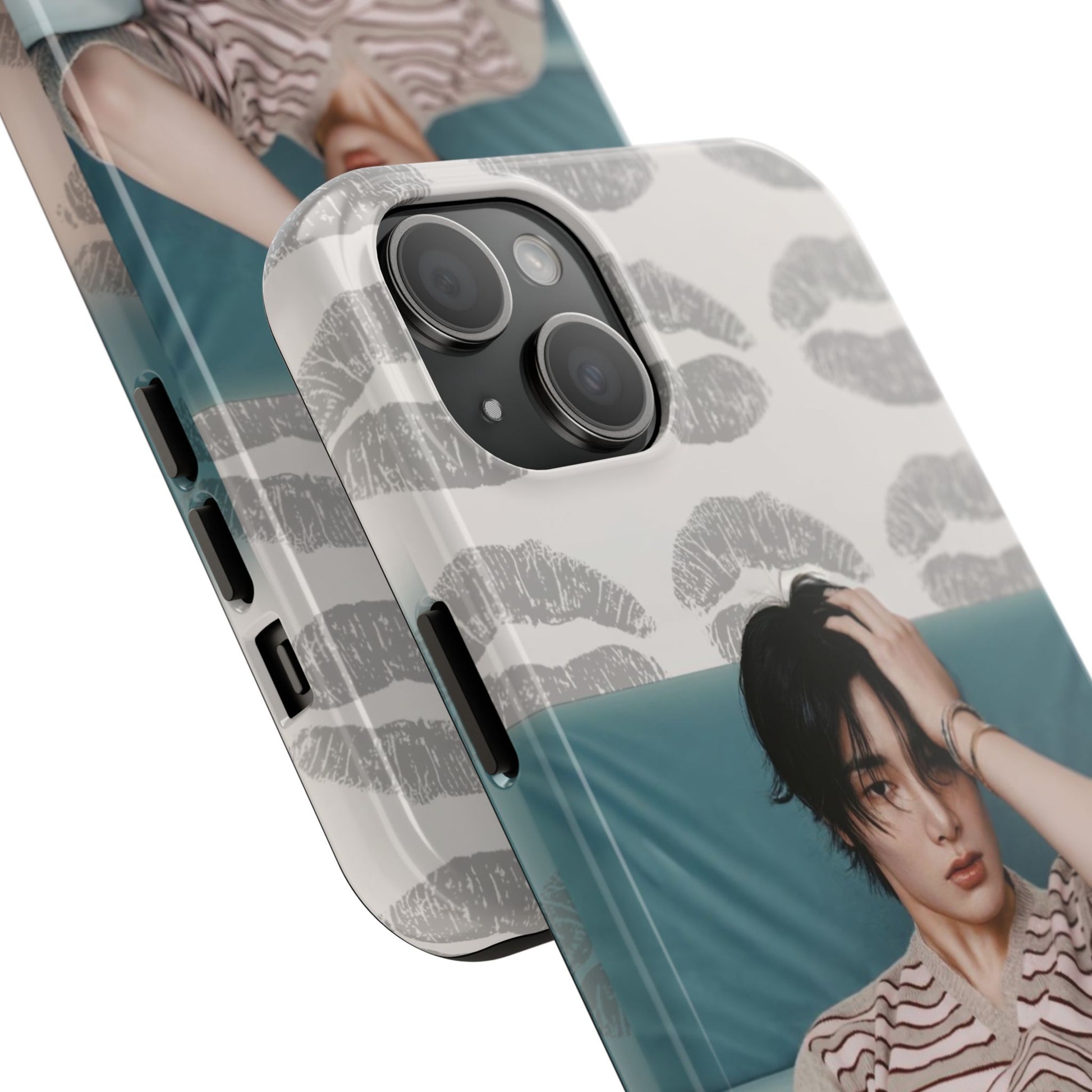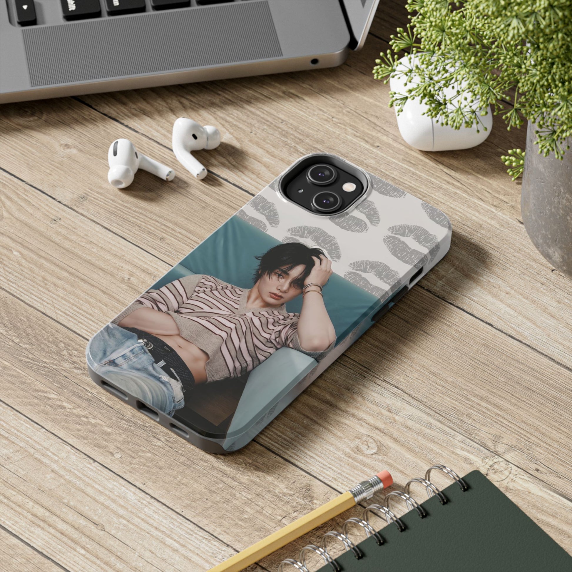 Jeongin Tough Phone Case — Retro Kiss Pattern with Relaxed Model Photo