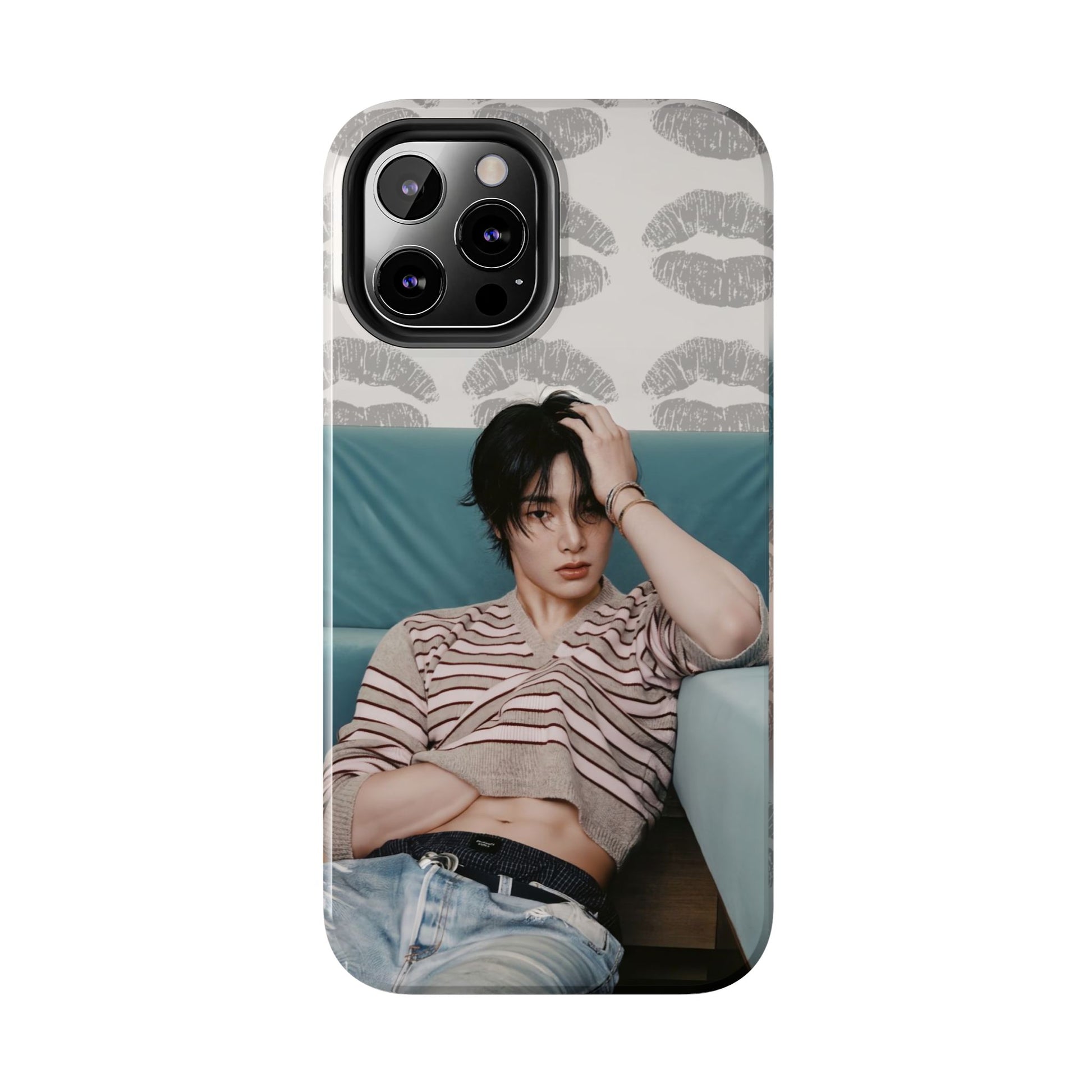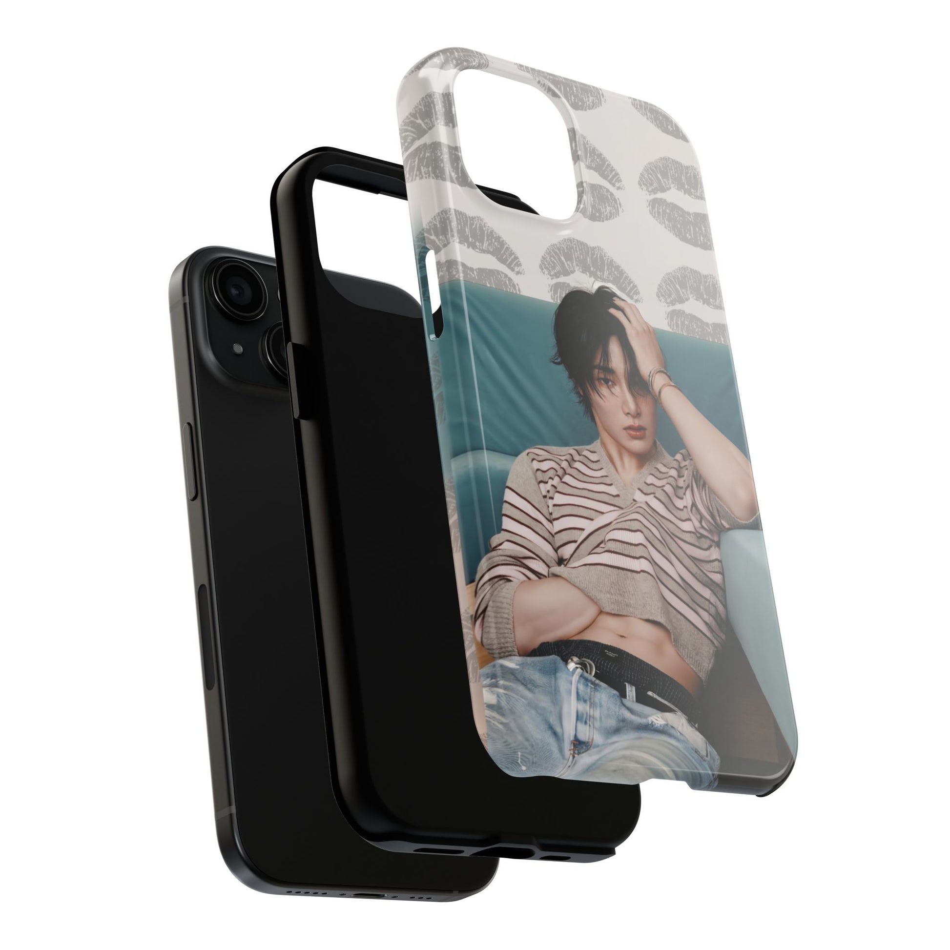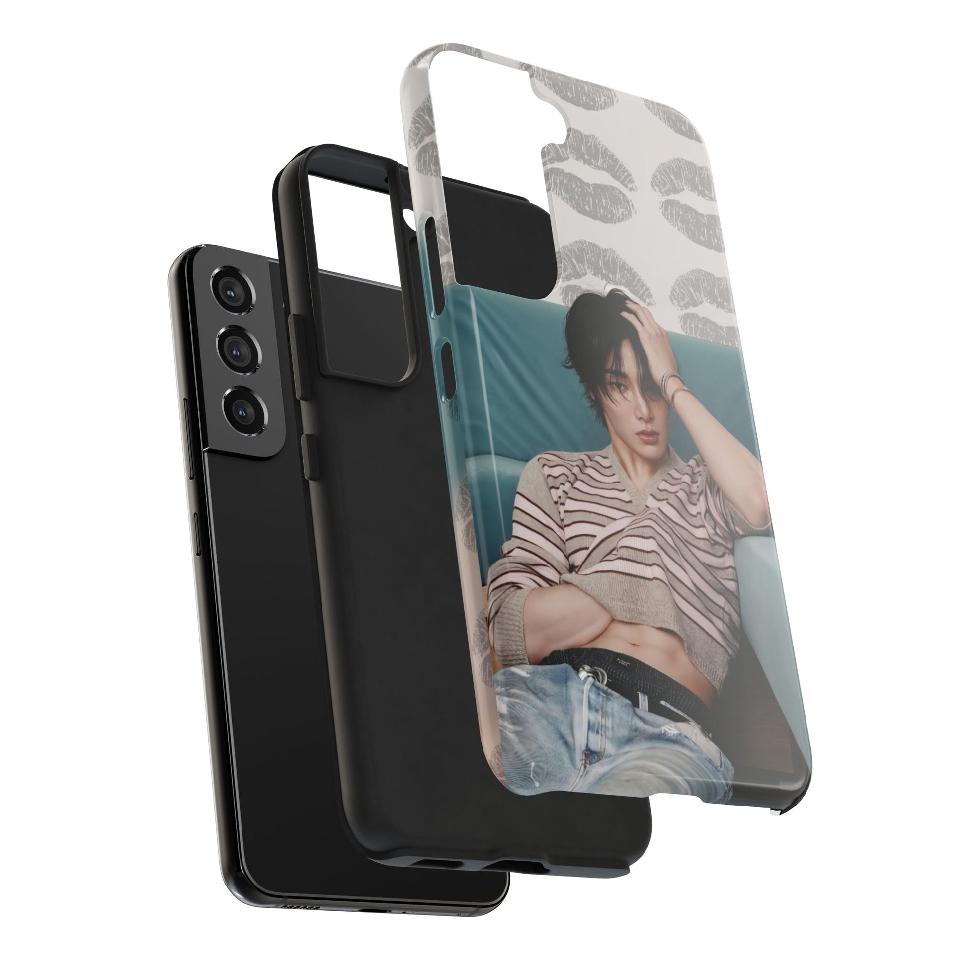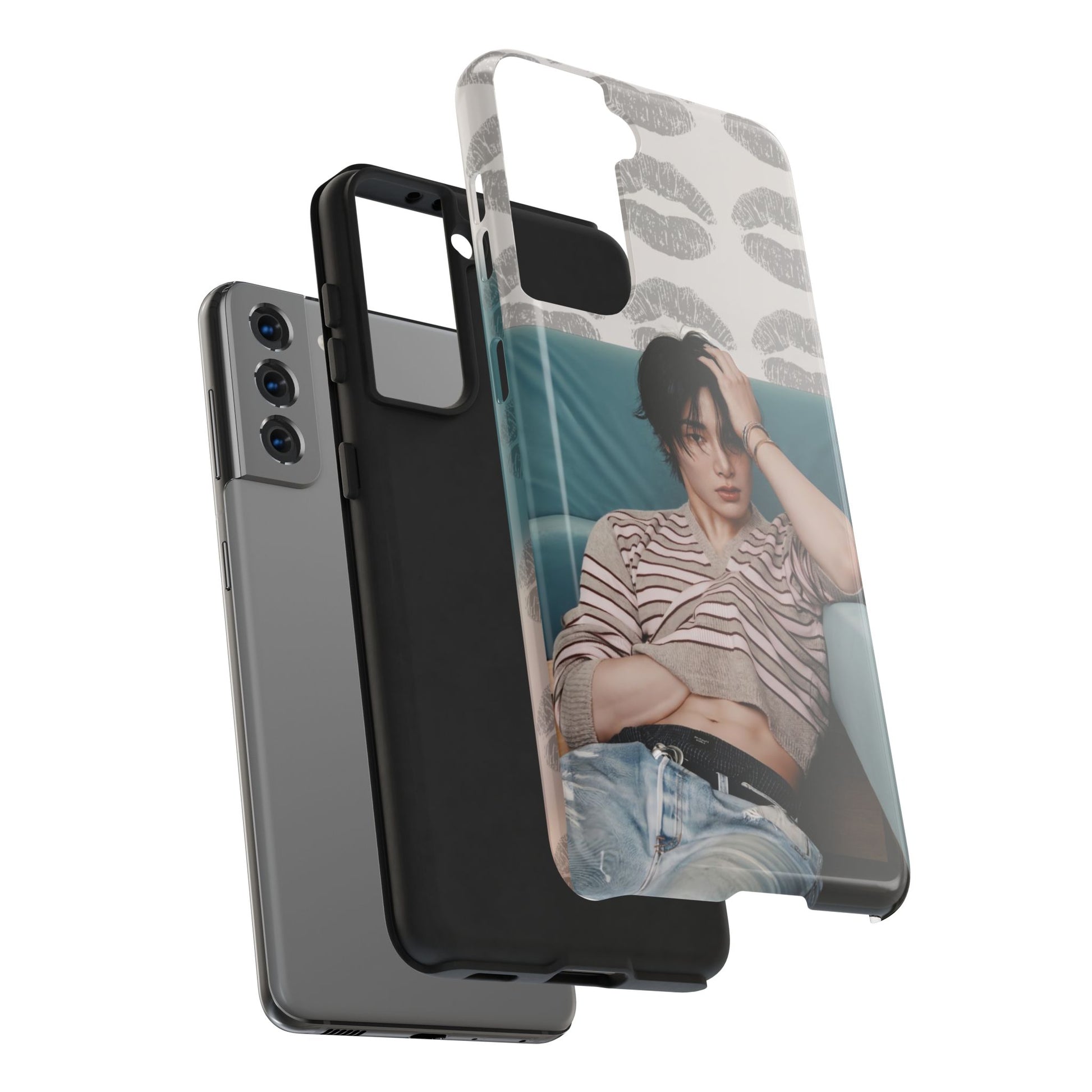 Jeongin Tough Phone Case — Retro Kiss Pattern with Relaxed Model Photo