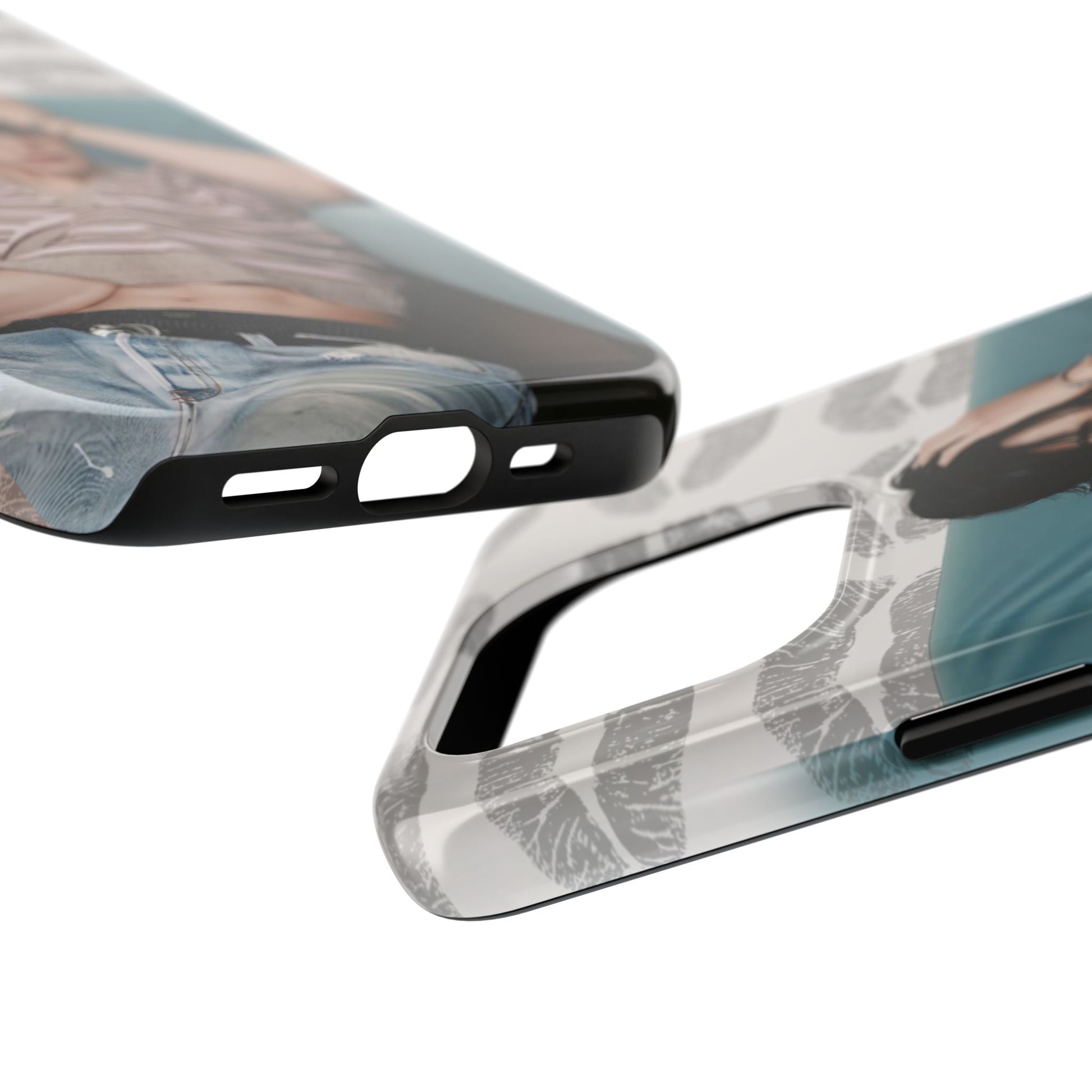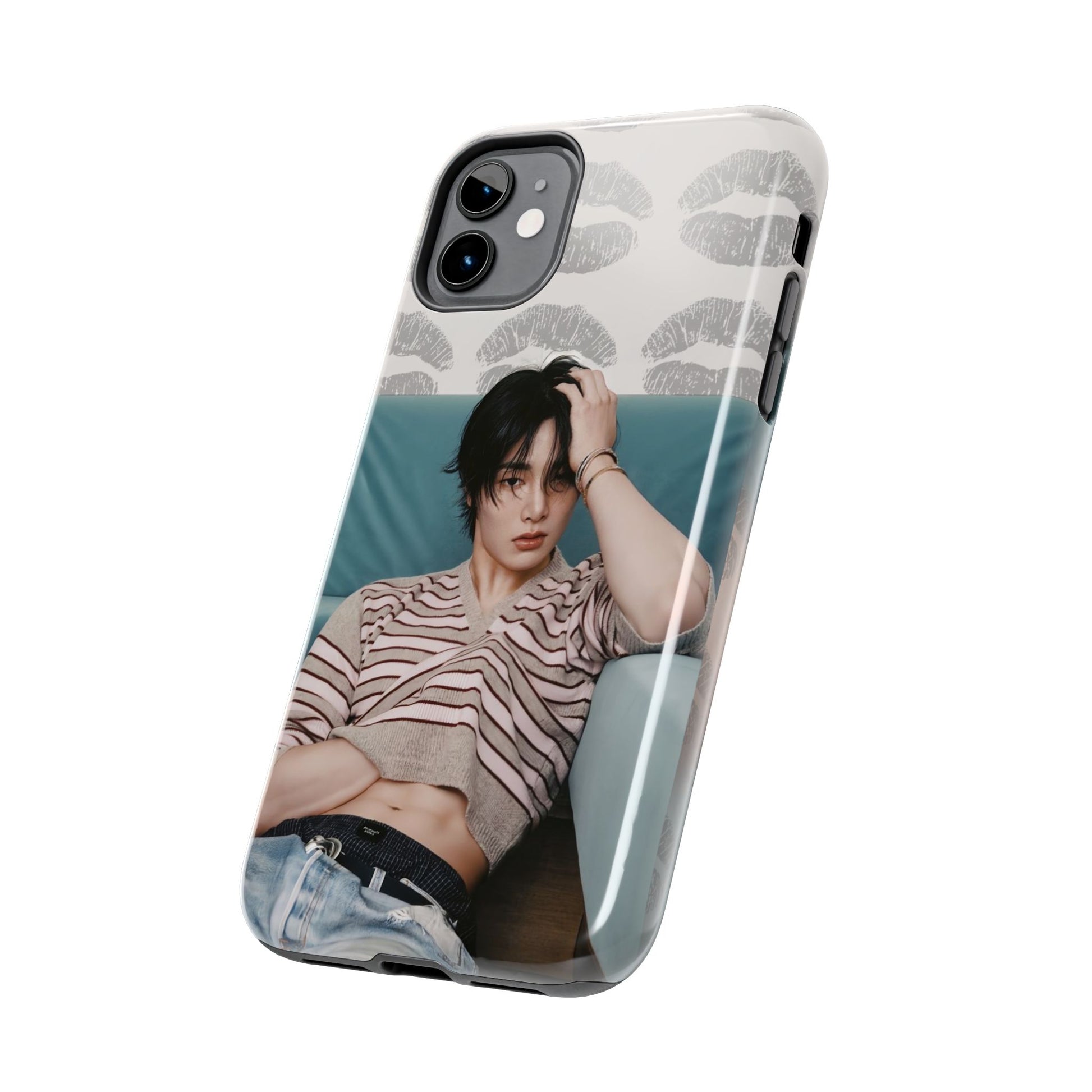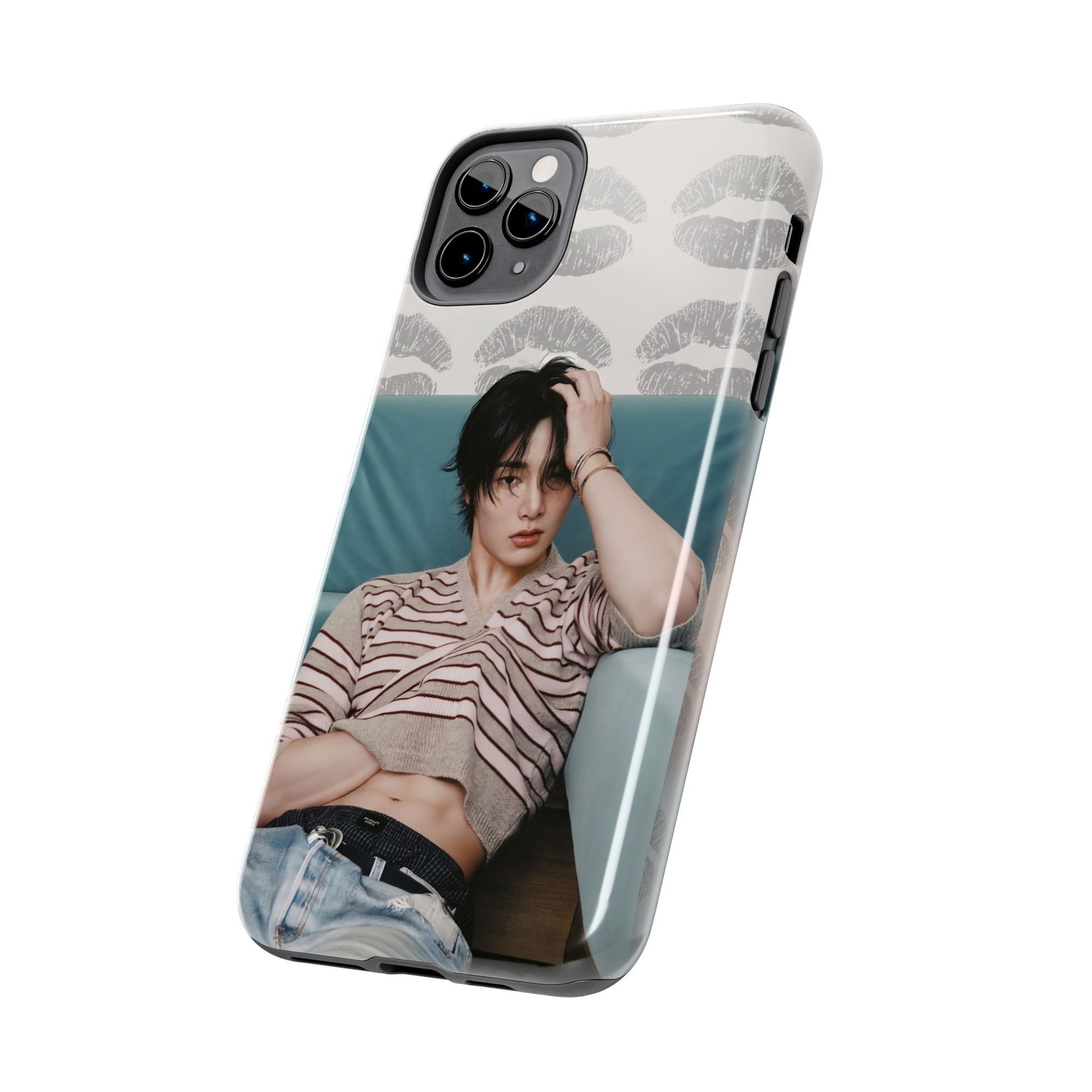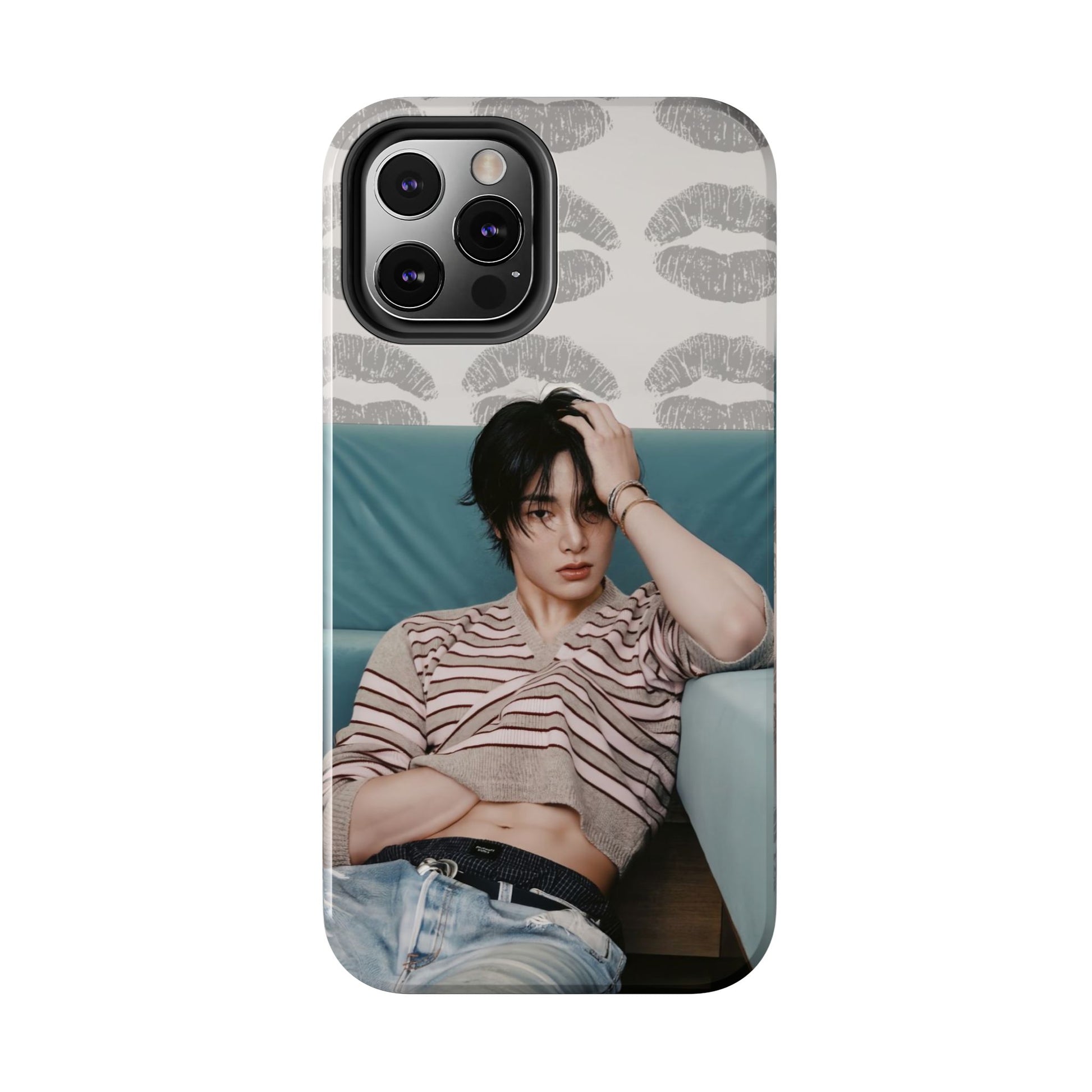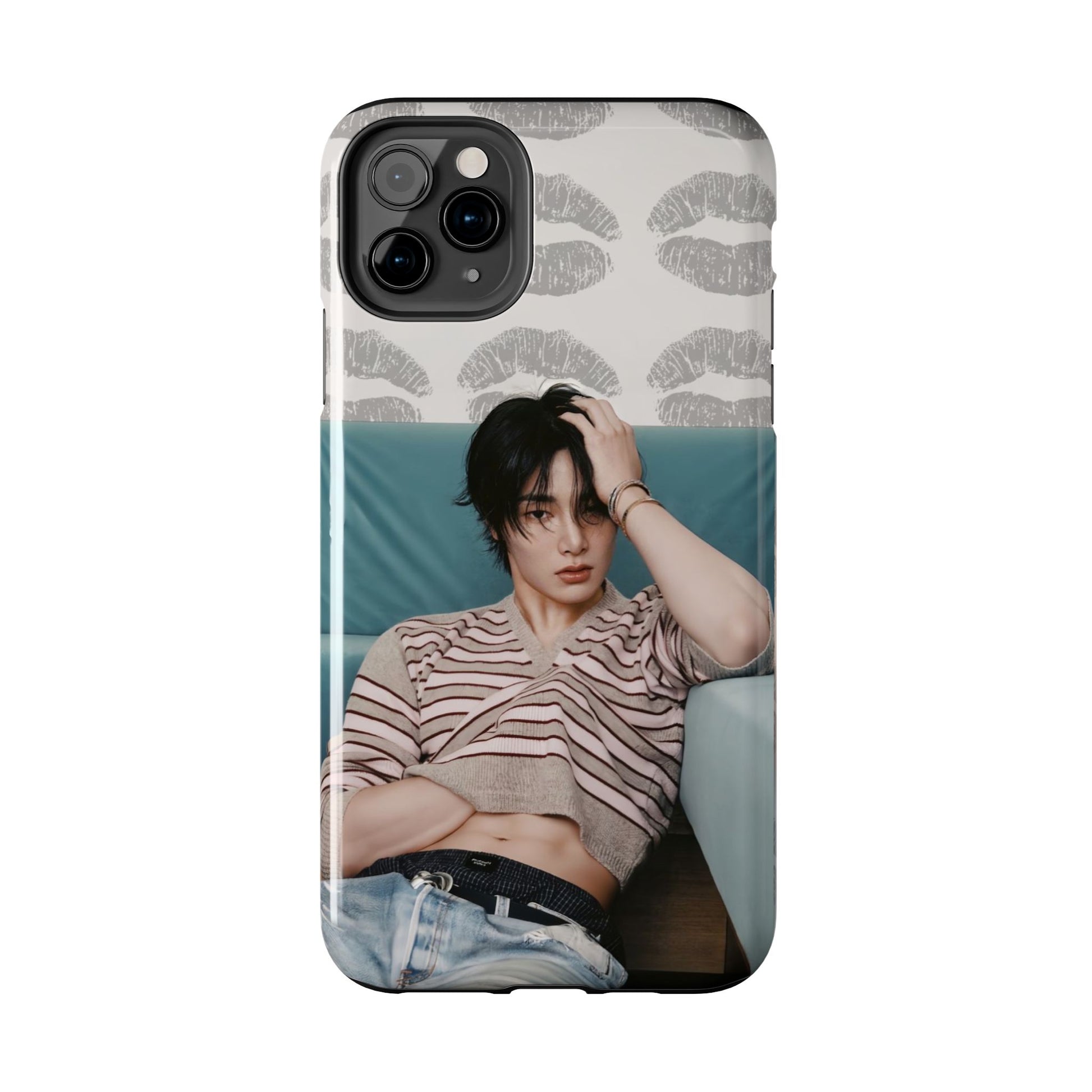 Jeongin Tough Phone Case — Retro Kiss Pattern with Relaxed Model Photo
