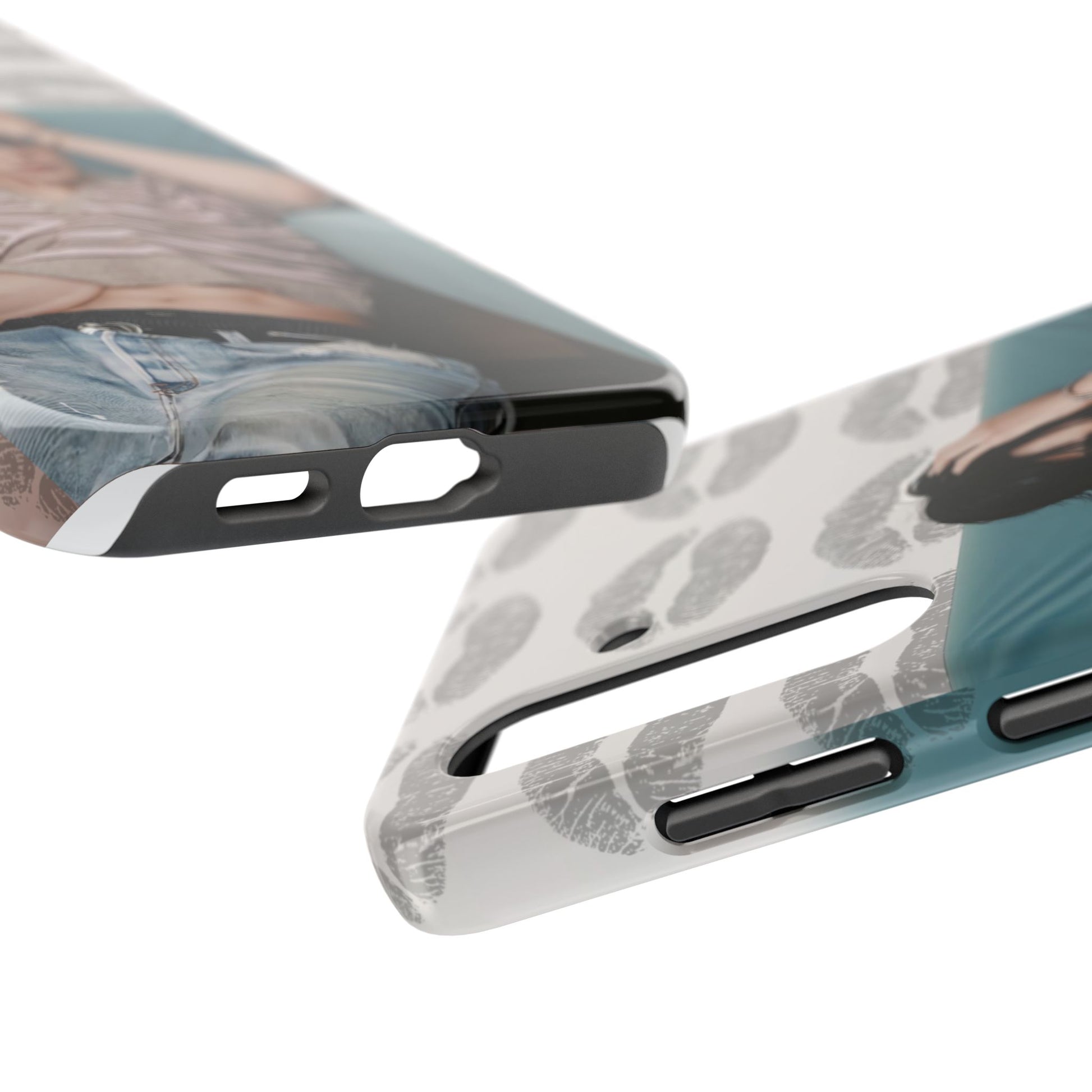 This phone case mixes soft, modern style with dependable protection. The glossy, full-color print pairs a relaxed portrait set against a muted lip-print pattern, giving the case a fashionable, slightly playful edge. The slim two-piece shell snaps together cleanly while the flexible rubber liner cushions drops. A raised lay-flat bezel helps keep the screen off surfaces, and UV-protected inks keep colors vibrant through everyday wear. It’s a wearable piece of everyday art that slips easily into pockets and supports wireless charging when you need it.