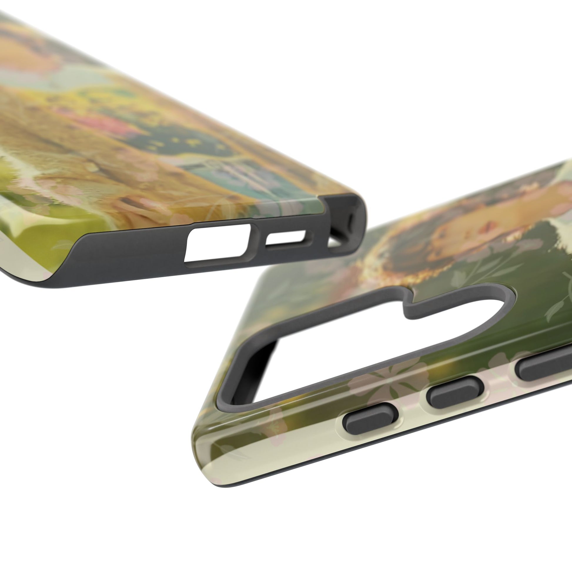 This durable phone case wraps your device in a soft, nostalgic scene — warm greens, floral silhouettes, and a gently blurred portrait that reads like a memory. The image is printed in full-wrap 3D ink for vivid color and edge-to-edge coverage. A matte or glossy outer shell resists outdoor fading thanks to UV protection, while the dual-layer build (rigid polycarbonate shell + TPU silicone liner) cushions shocks and absorbs impacts. Ports remain fully accessible and wireless charging is supported. Subtle florals around the edges add a handcrafted, vintage mood that complements everyday life — commuting, coffee shop days, or quiet walks when you want your phone to feel like a small, wearable snapshot of calm.