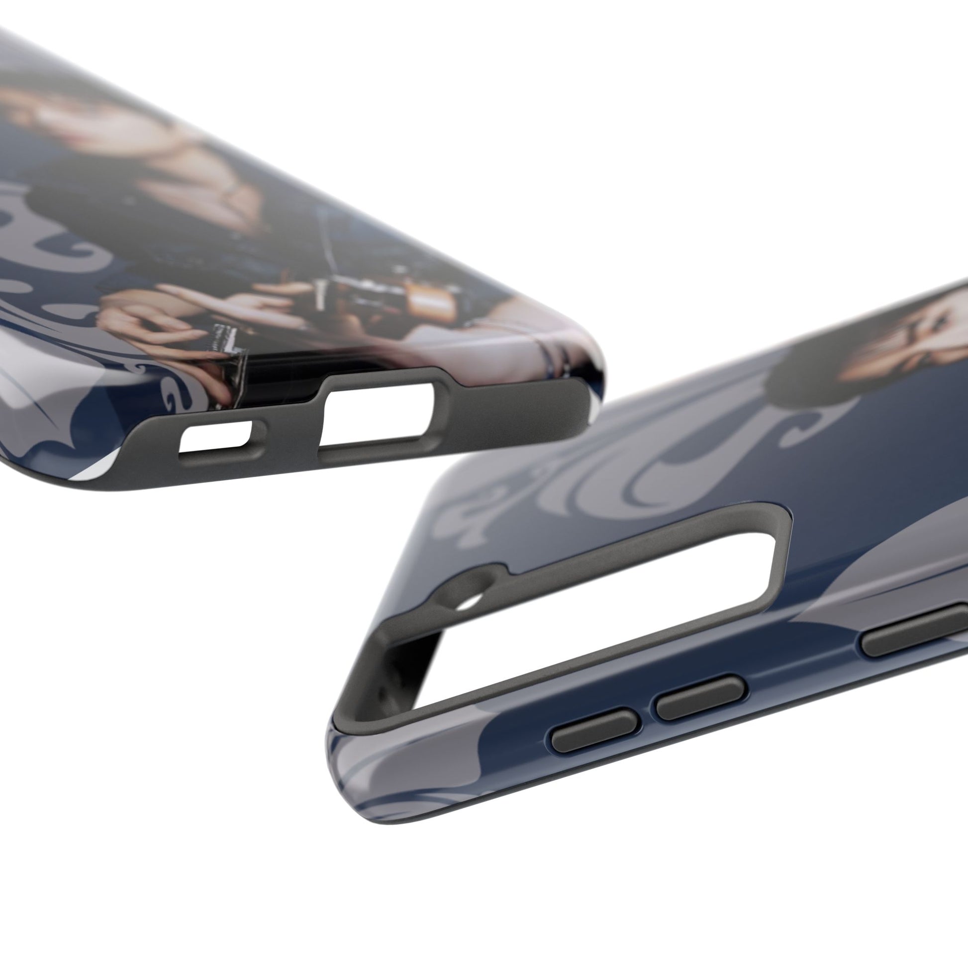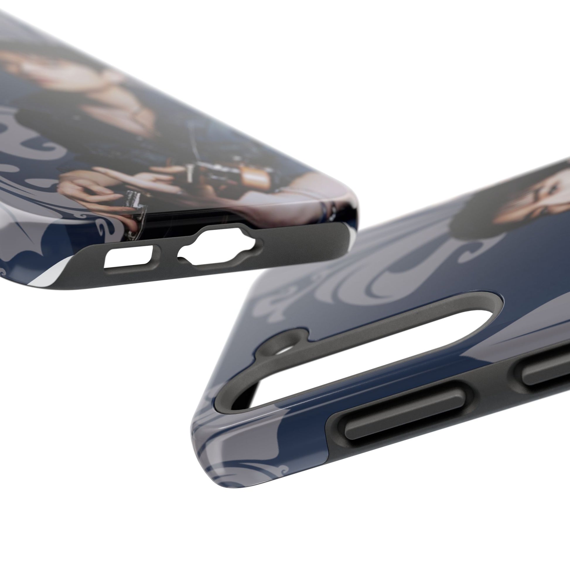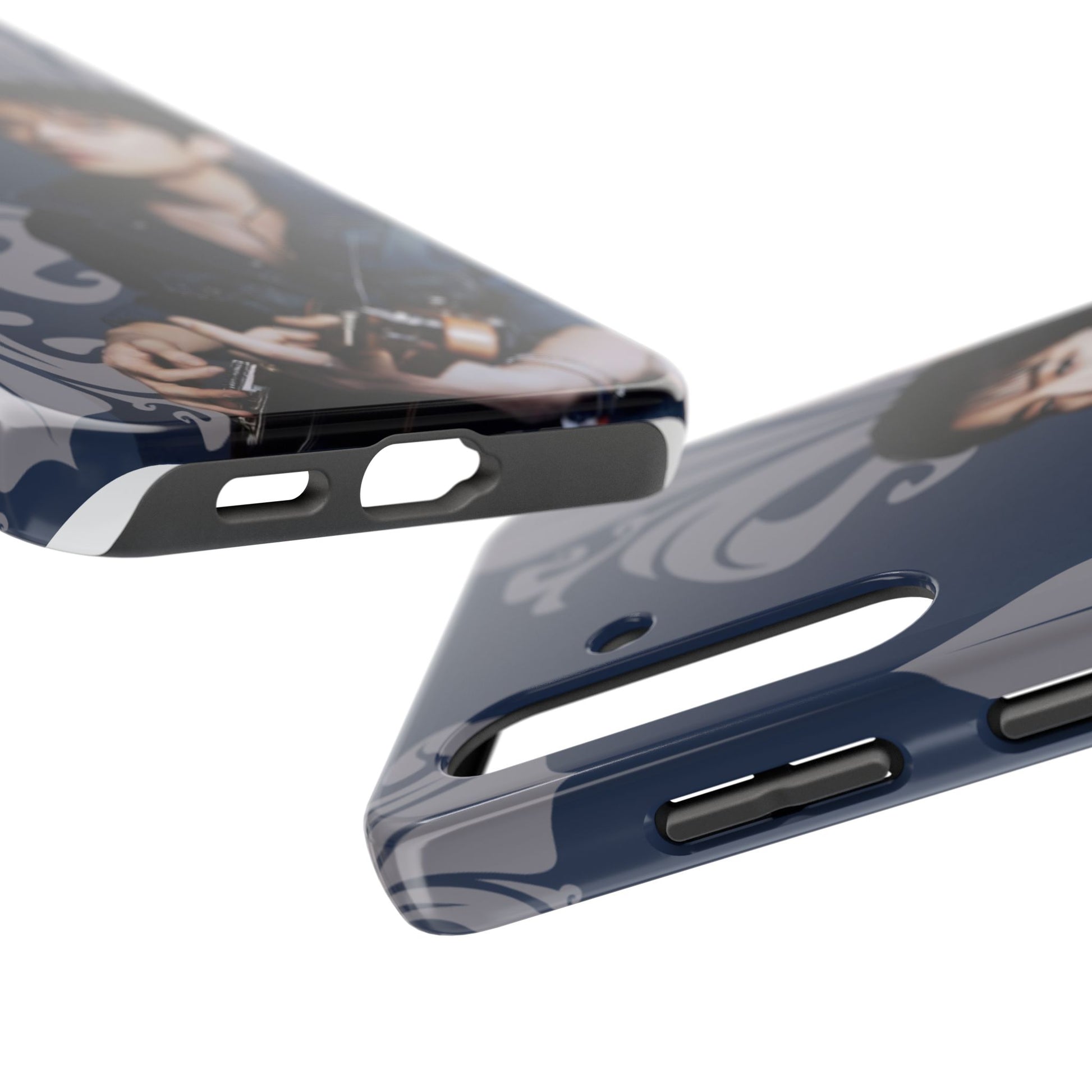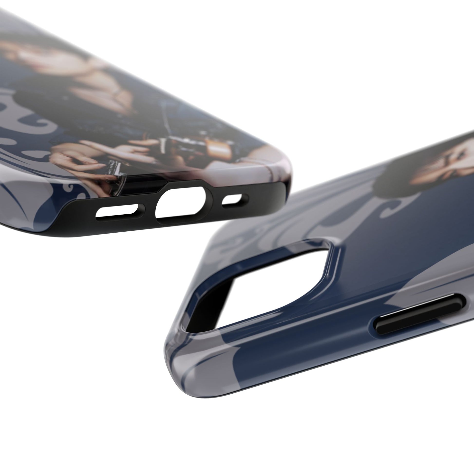 This glossy, protective phone case wraps your device in a moody, artful vibe — deep navy tones, scrolling ornamental flourishes, and a contemplative portrait that reads like a still from an indie film. The case feels solid in hand yet slim enough to slide into a pocket. It’s built for people who treat their phone as part of their personal aesthetic: thoughtful, slightly nostalgic, and quietly stylish. Carry it when you’re heading to a late-night gig, wandering a gallery, or meeting friends for coffee; the design sets a tone without shouting. The glossy finish makes the colors pop while the layered construction shields your device from daily knocks. It’s a choice for someone who likes accessories with personality and visual storytelling.