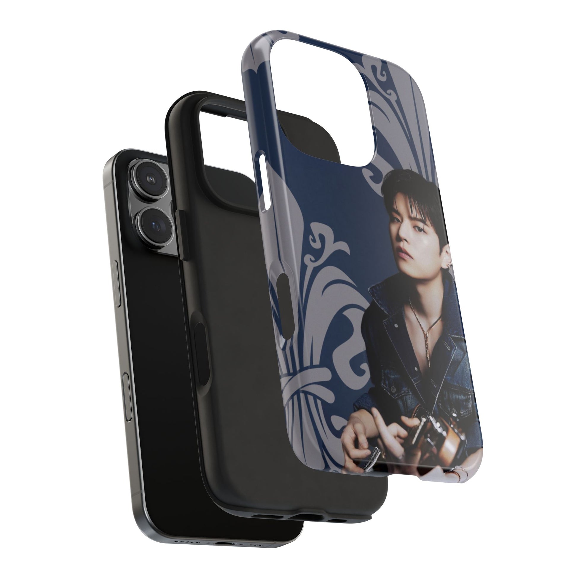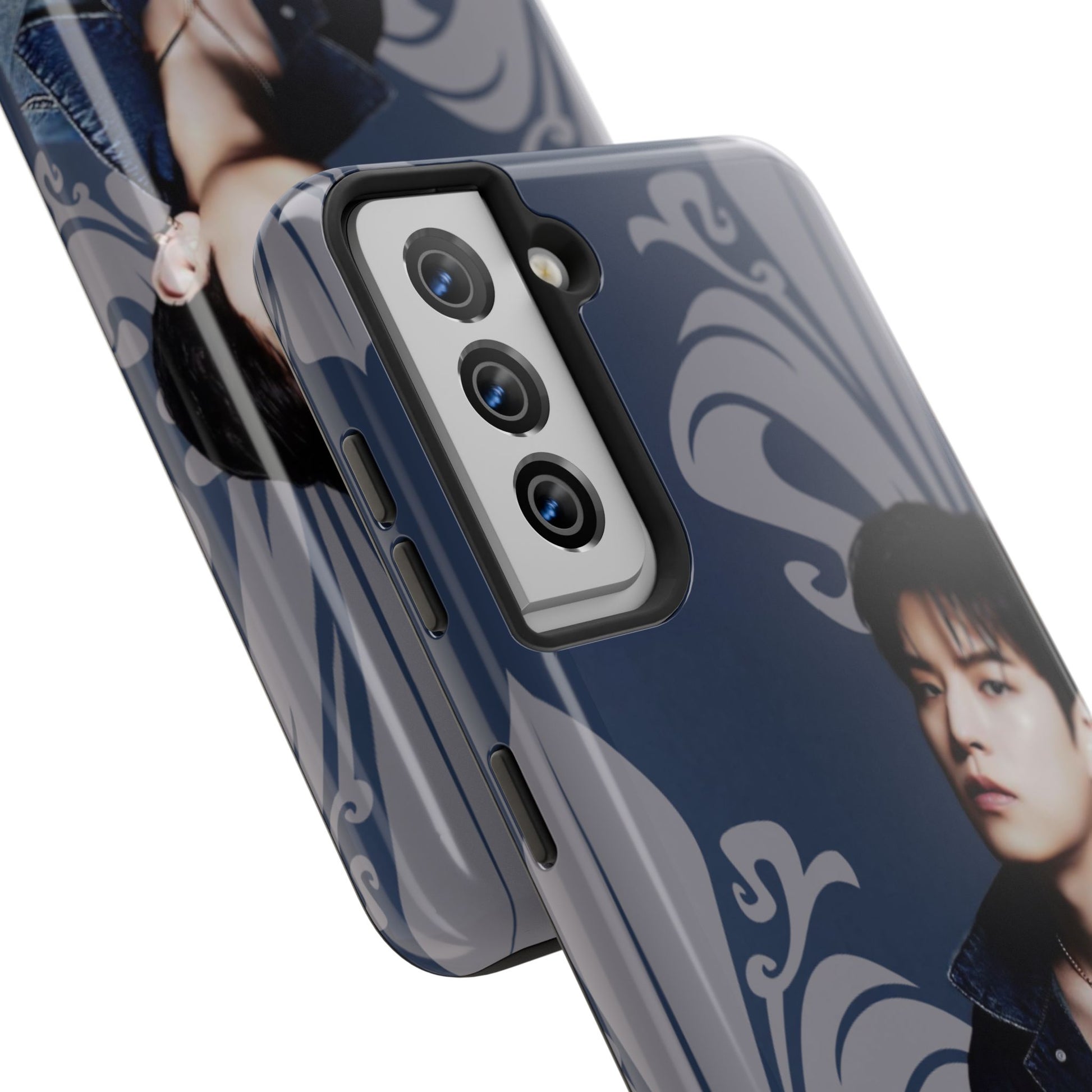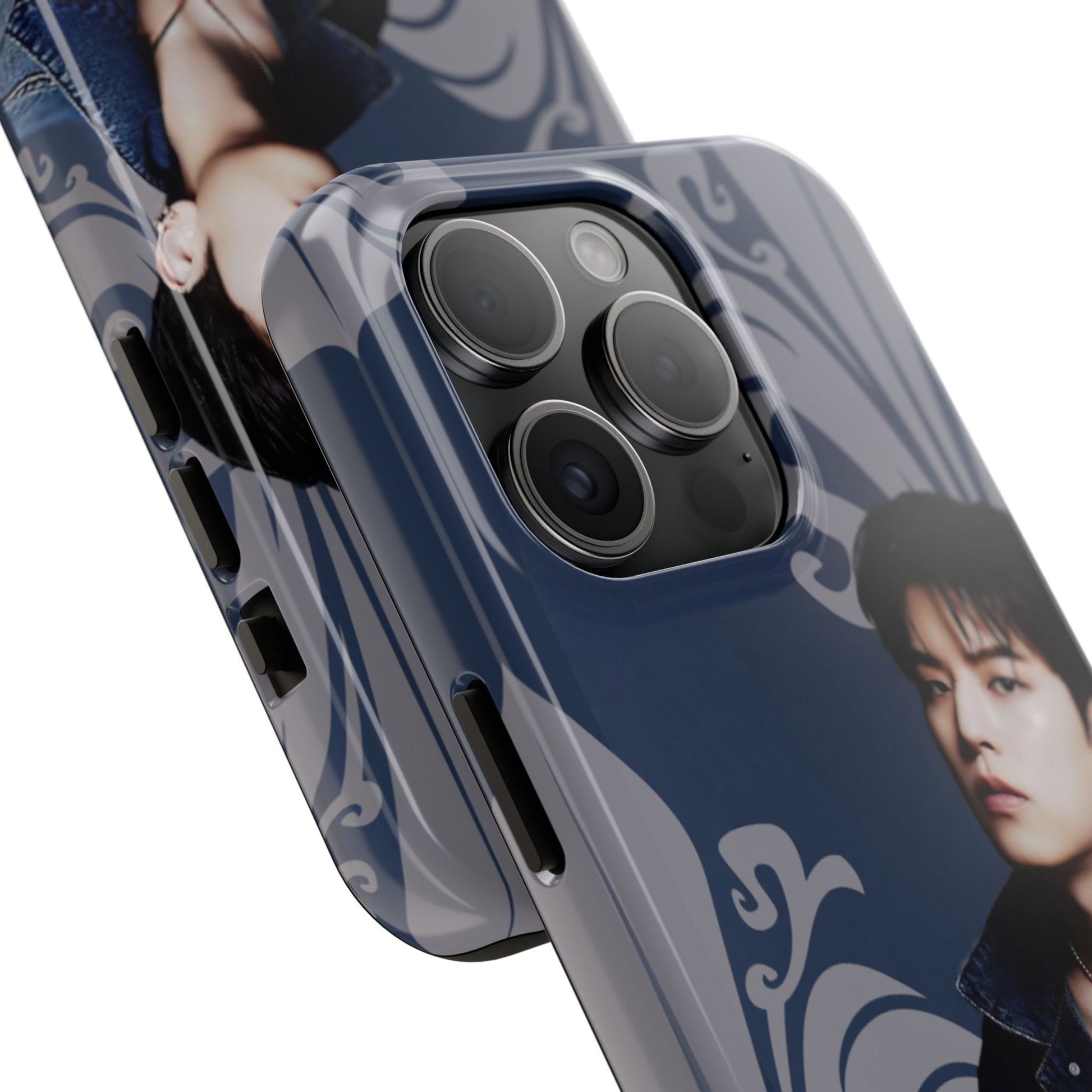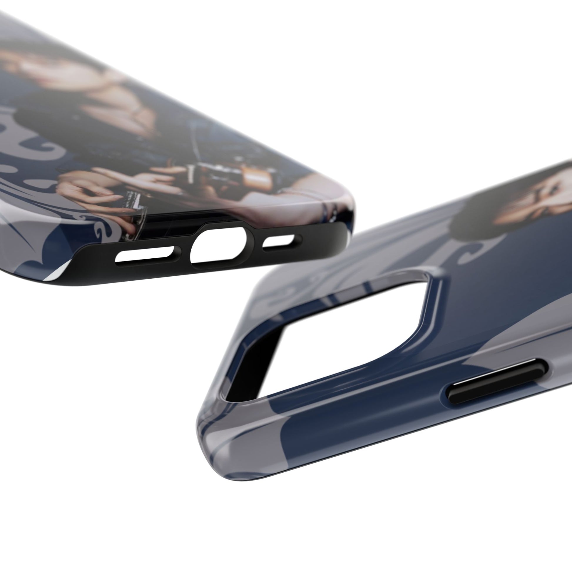 This glossy, protective phone case wraps your device in a moody, artful vibe — deep navy tones, scrolling ornamental flourishes, and a contemplative portrait that reads like a still from an indie film. The case feels solid in hand yet slim enough to slide into a pocket. It’s built for people who treat their phone as part of their personal aesthetic: thoughtful, slightly nostalgic, and quietly stylish. Carry it when you’re heading to a late-night gig, wandering a gallery, or meeting friends for coffee; the design sets a tone without shouting. The glossy finish makes the colors pop while the layered construction shields your device from daily knocks. It’s a choice for someone who likes accessories with personality and visual storytelling.
