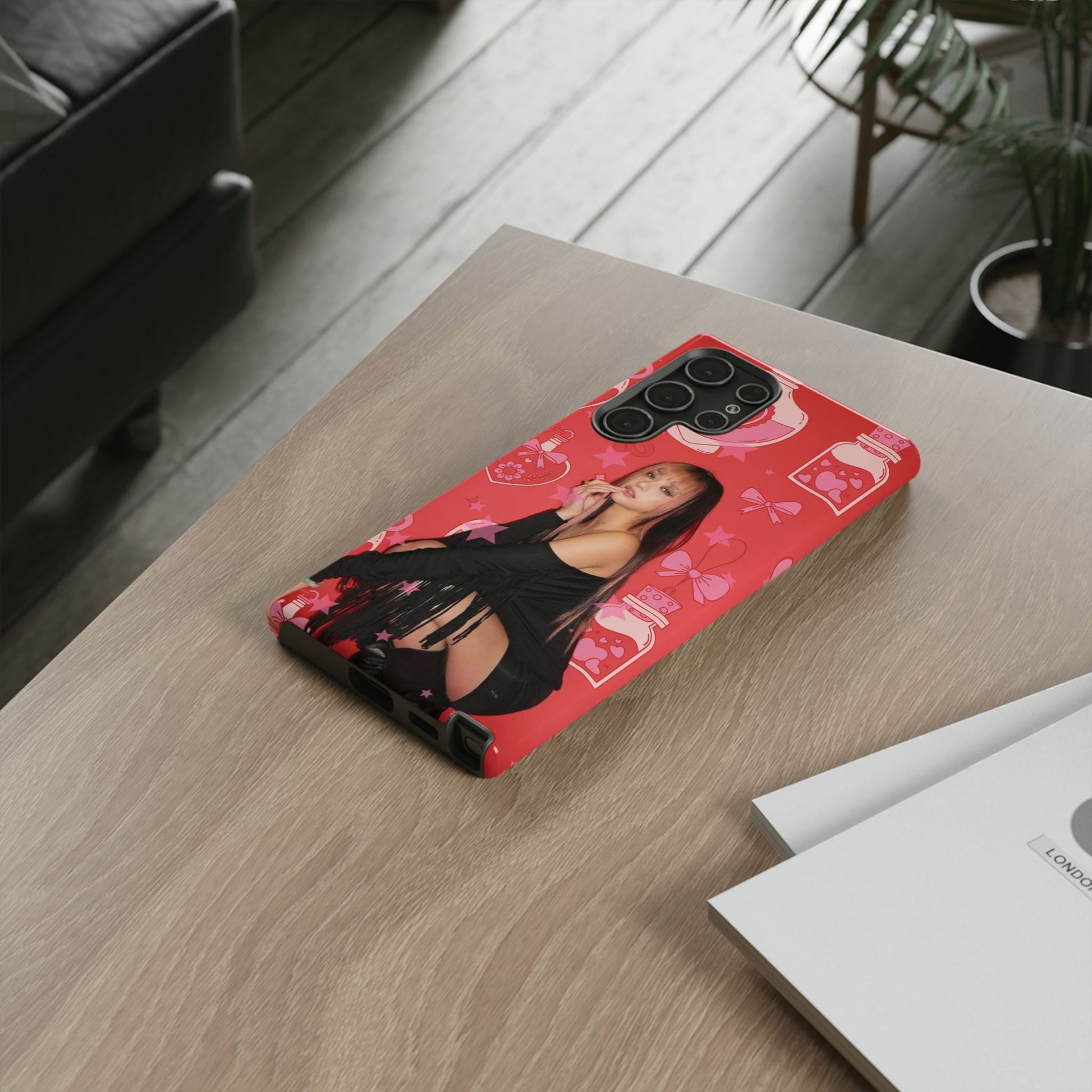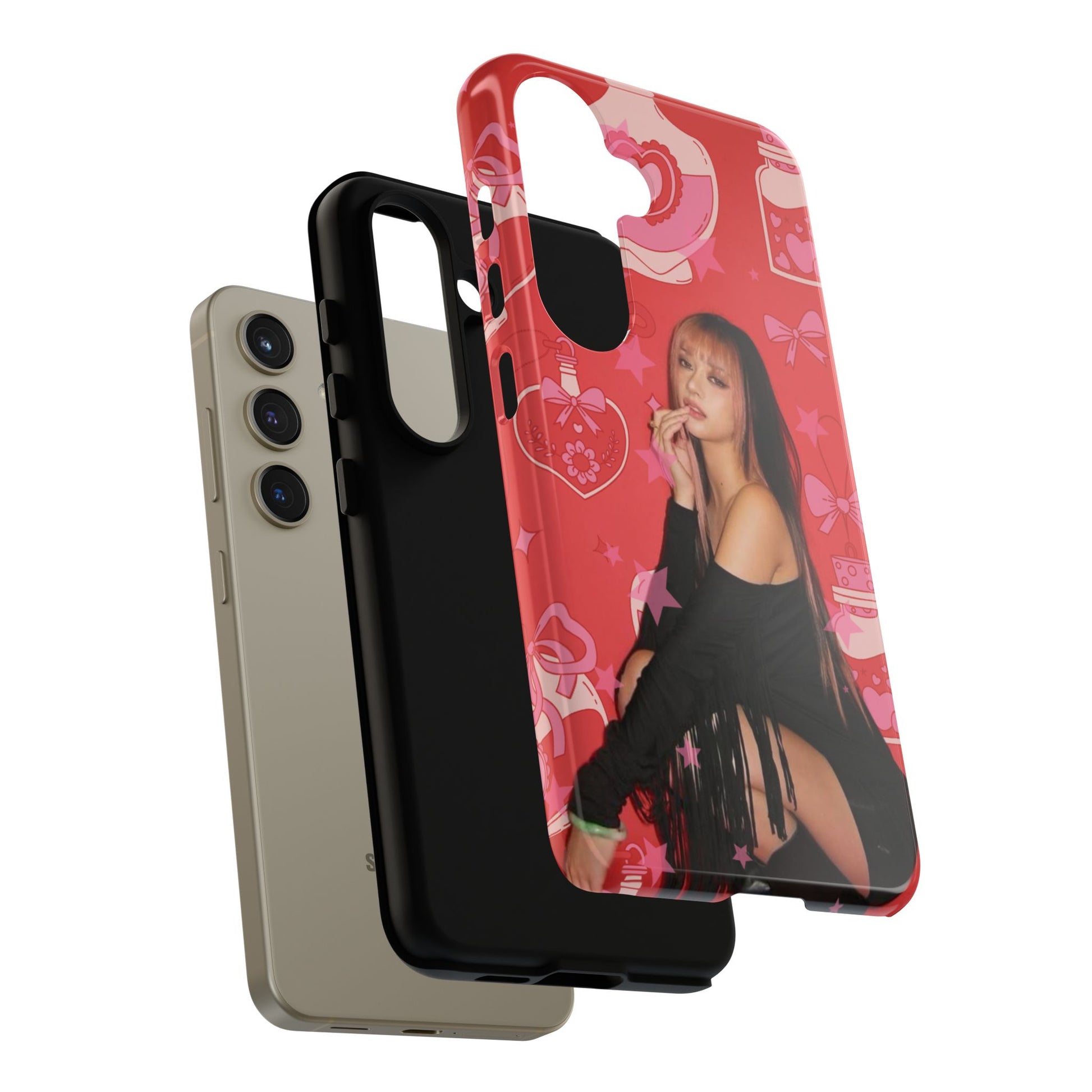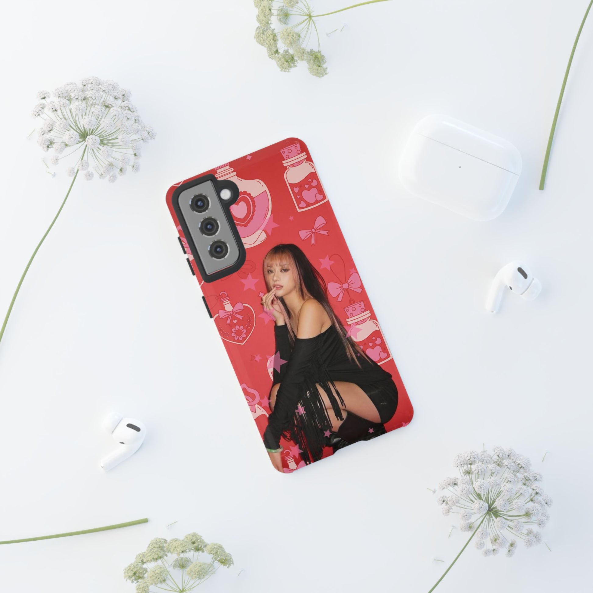 Megan Phone Case — Pink Heart & Perfume Pattern