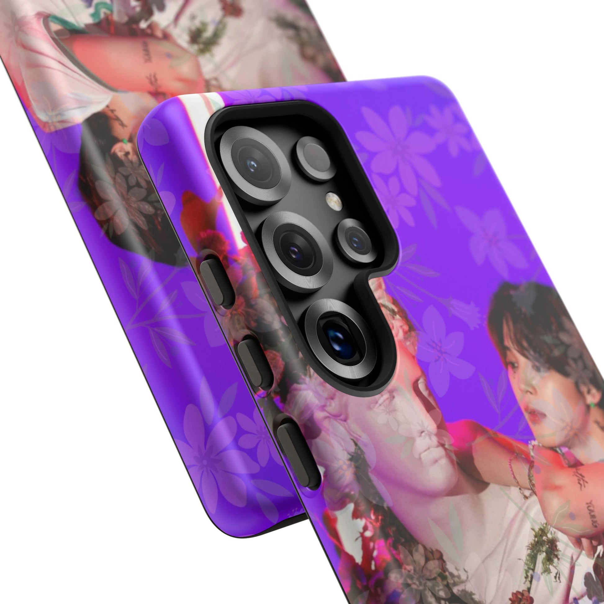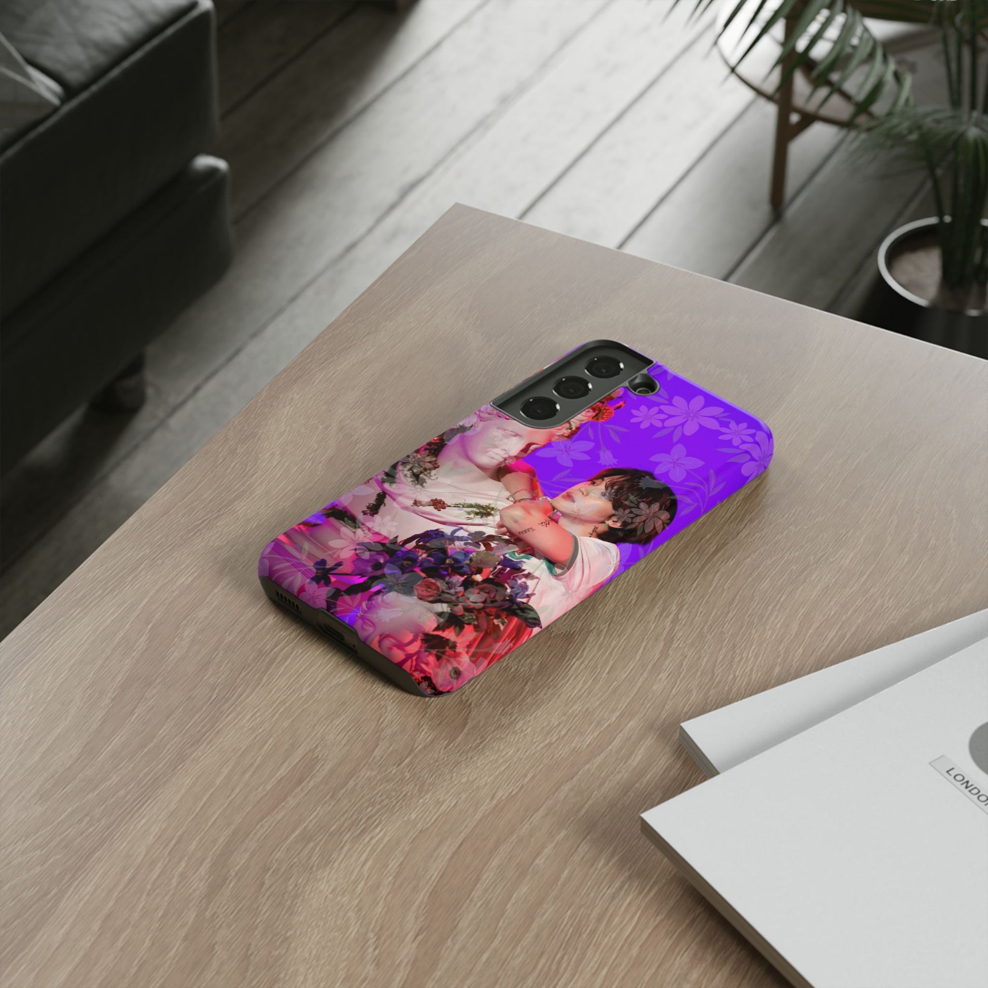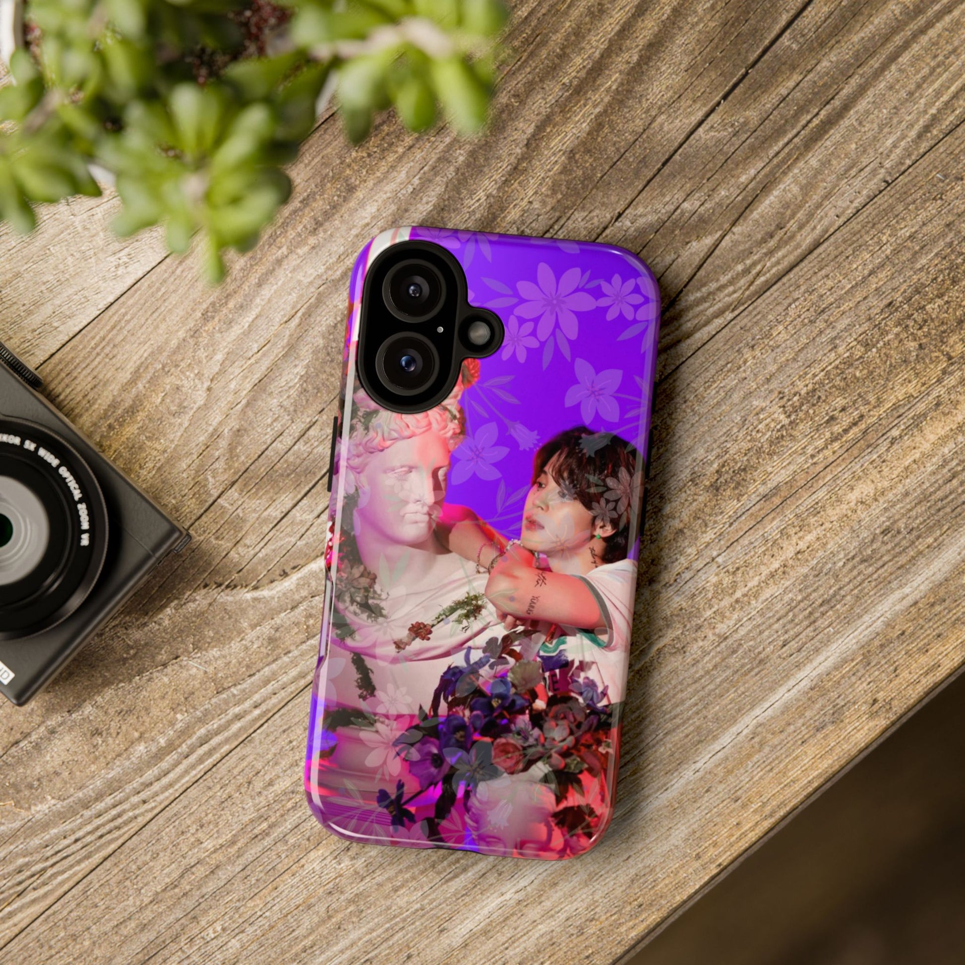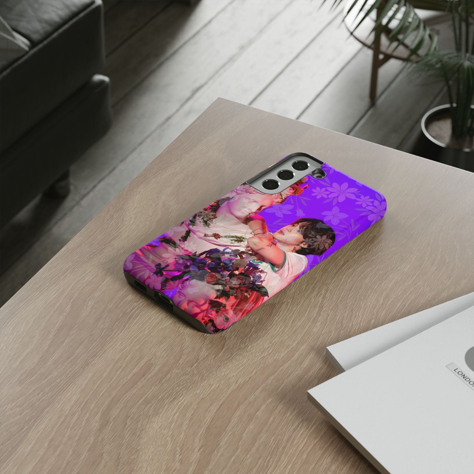 A vivid, art-driven protective phone case that turns your device into a small gallery. Rich magenta and violet tones frame a classical statue entwined with lush flowers and a contemplative figure — an image that feels both nostalgic and modern. The dual-layer shell hugs the phone while a soft TPU liner absorbs shocks; the high-density 3D wrap keeps colors saturated and resistant to outdoor fading. Lightweight, glossy or matte finish options keep the print punchy and tactile. For those who treat their tech like wearable art, this case brings a striking visual story to everyday use.