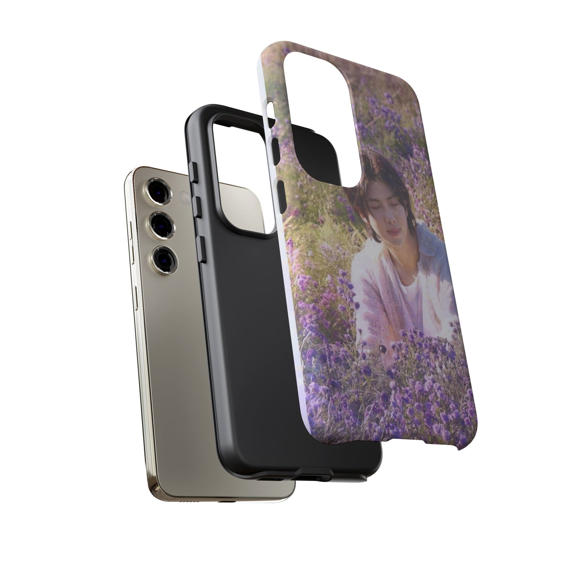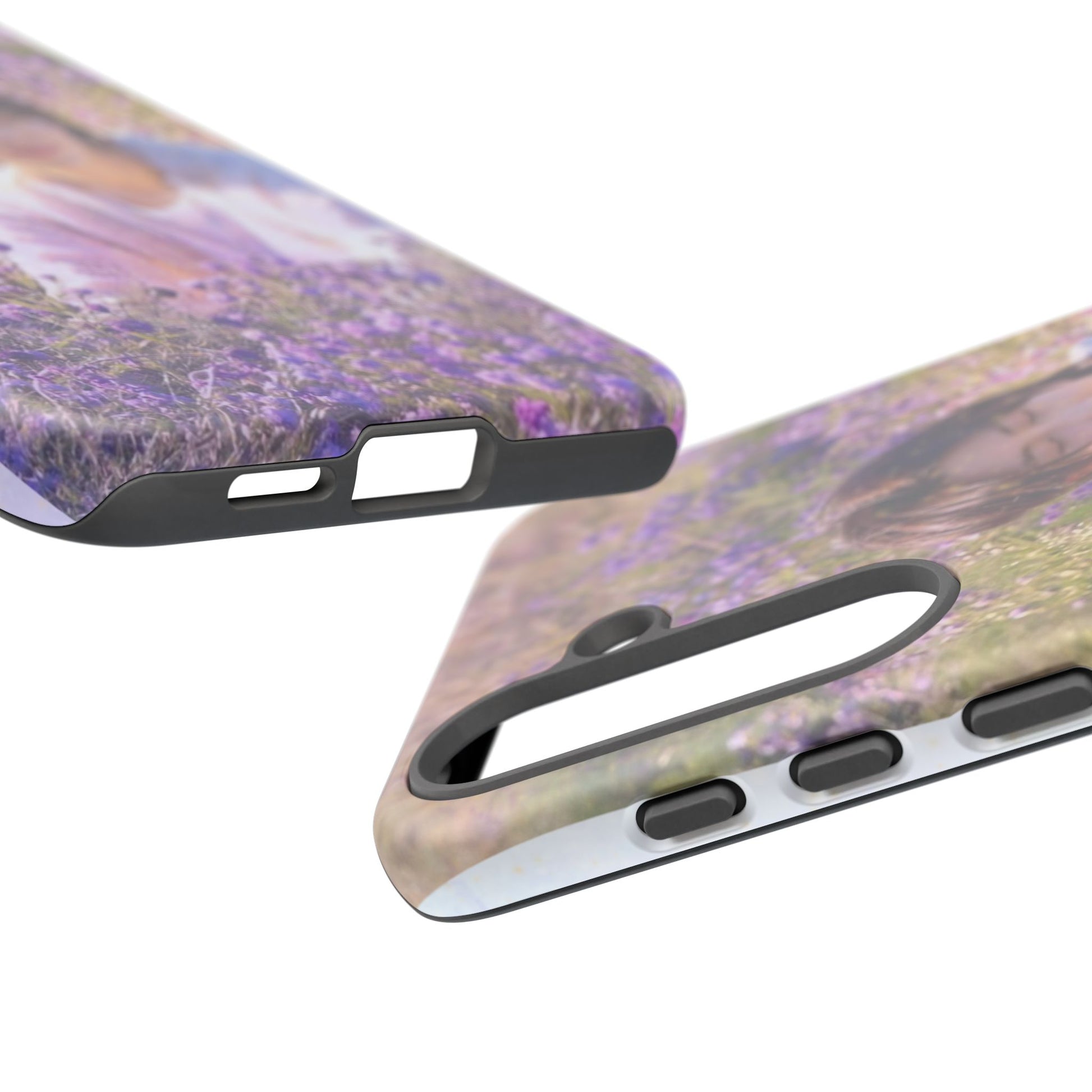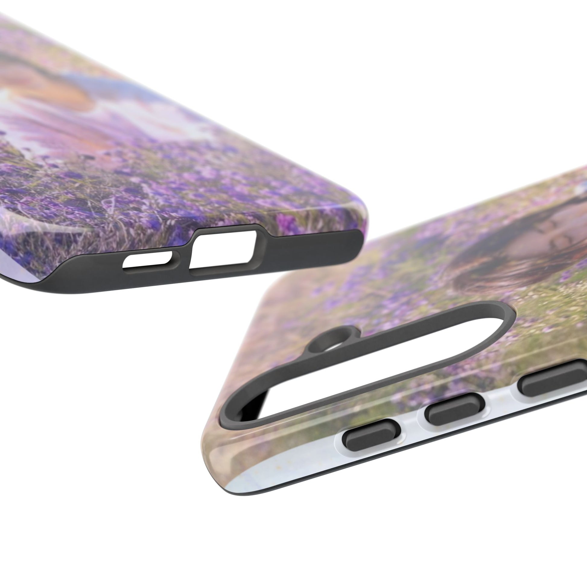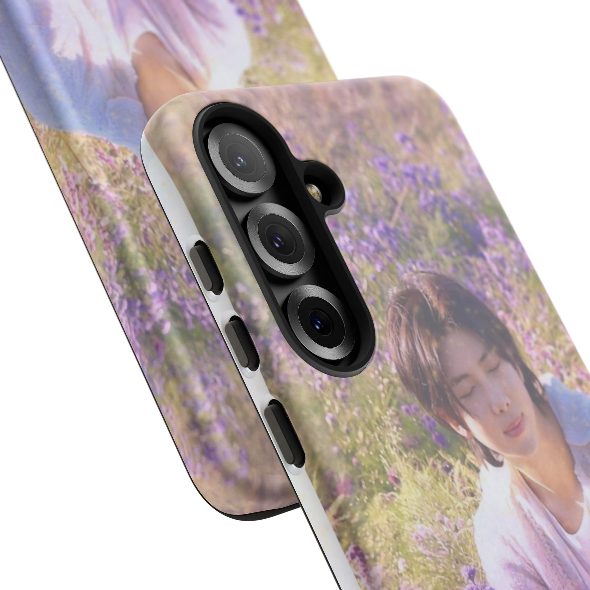 A dual-layer protective phone case wrapped in a dreamy floral photograph. The design places a contemplative figure among a field of lavender and soft greenery, giving the case a calm, wistful mood. It feels like holding a quiet moment — sunlight filtered through petals, a pause between busy days. The slim profile keeps your phone pocket-friendly while the glossy or matte finish preserves the image’s gentle colors. Built for everyday life, this case withstands drops and outdoor wear while keeping the scene crisp and softly vivid. It’s for people who carry small pockets of serenity with them: commuters, students, and anyone who likes a poetic touch on their everyday tech during spring walks, slow weekend mornings, or when they need a portable reminder to breathe.