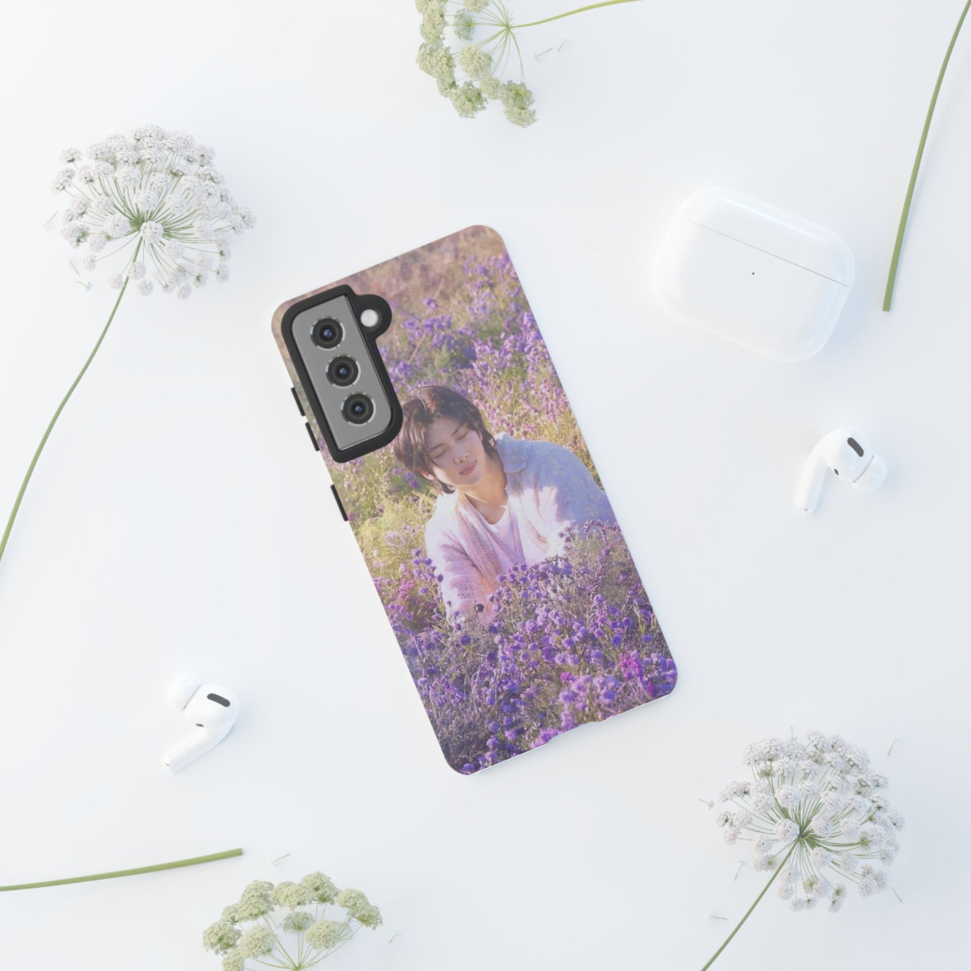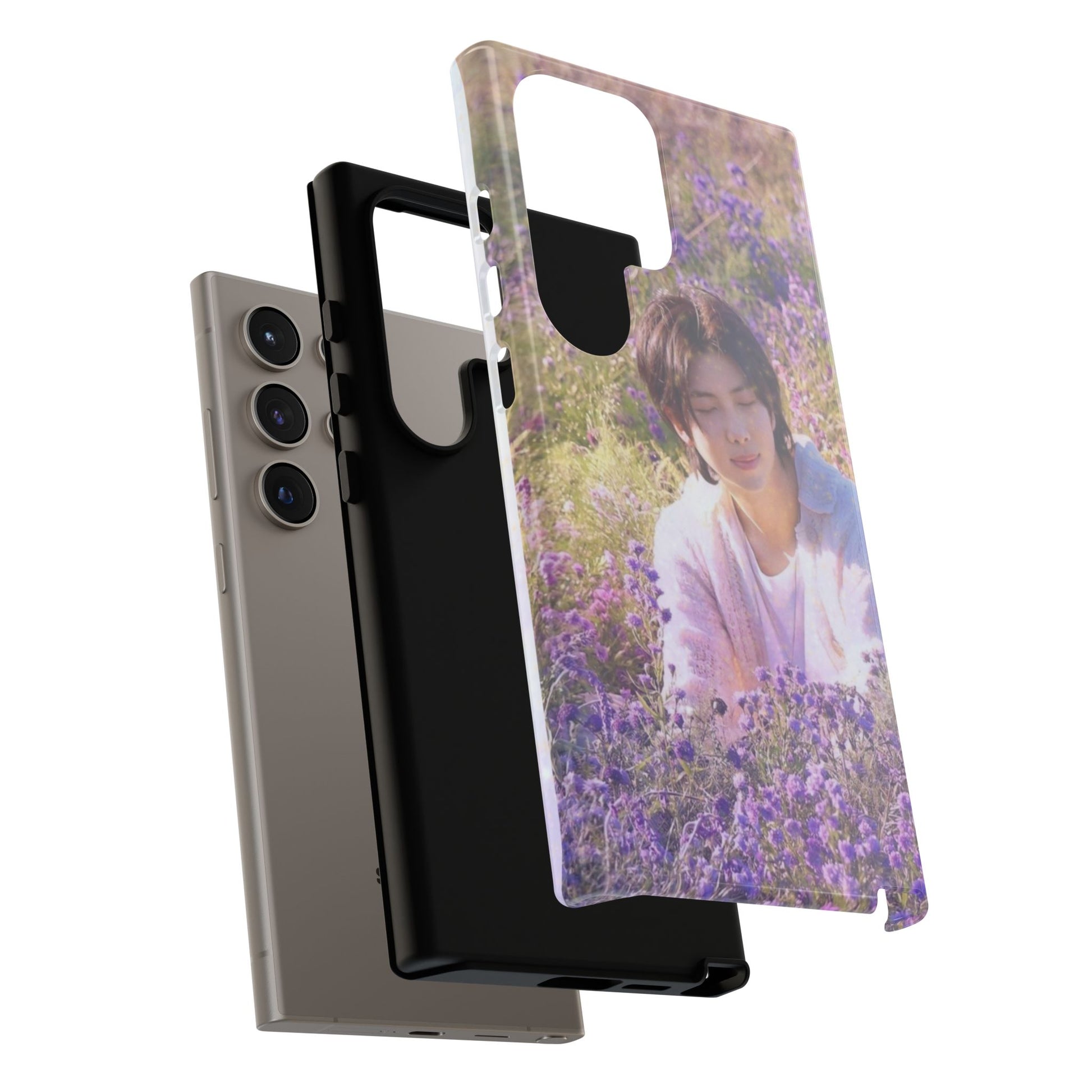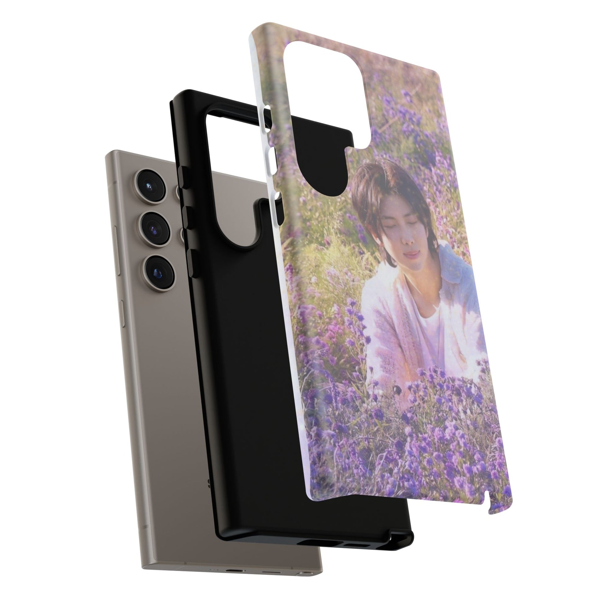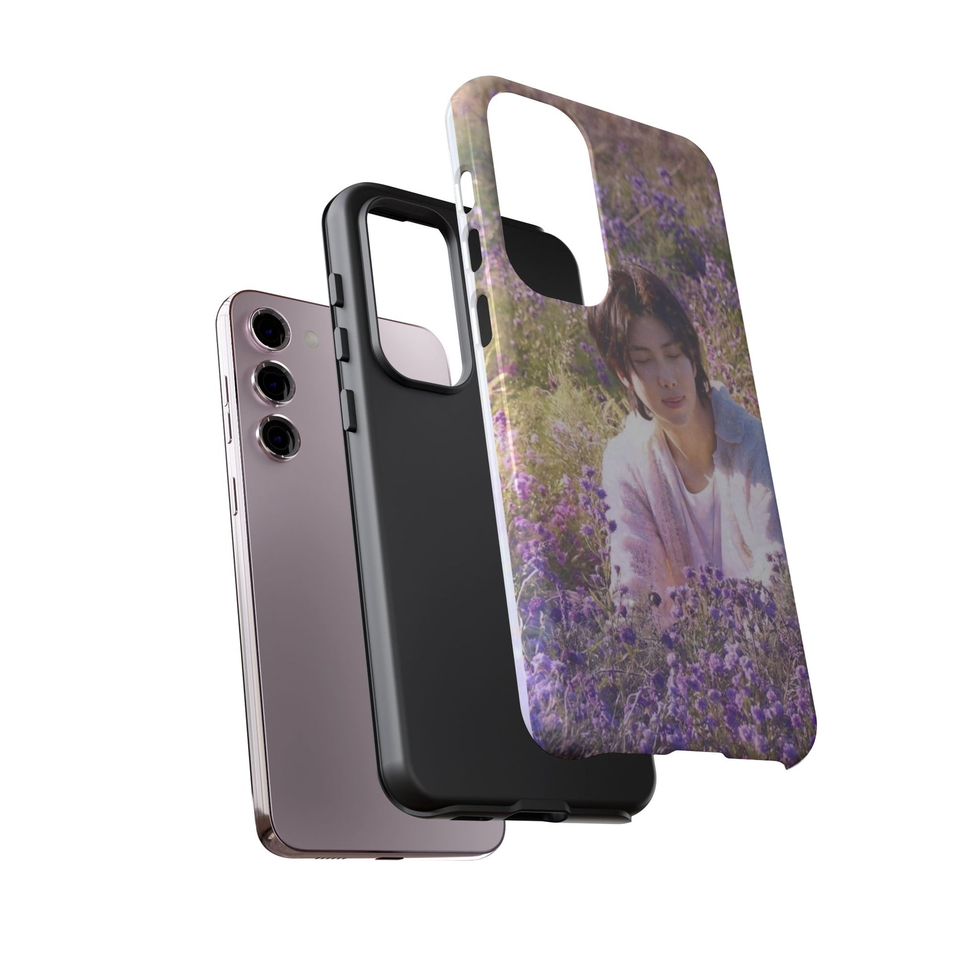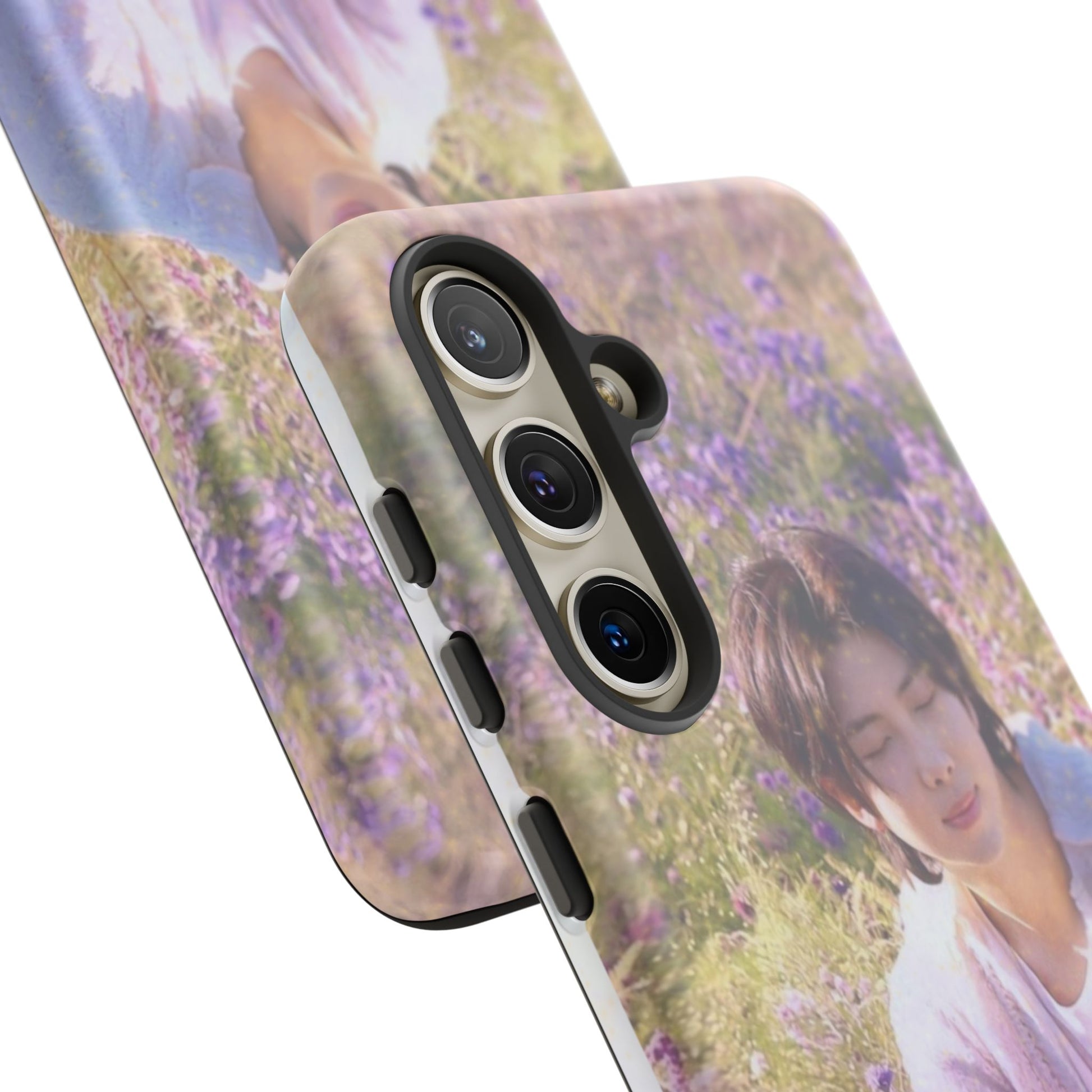 A dual-layer protective phone case wrapped in a dreamy floral photograph. The design places a contemplative figure among a field of lavender and soft greenery, giving the case a calm, wistful mood. It feels like holding a quiet moment — sunlight filtered through petals, a pause between busy days. The slim profile keeps your phone pocket-friendly while the glossy or matte finish preserves the image’s gentle colors. Built for everyday life, this case withstands drops and outdoor wear while keeping the scene crisp and softly vivid. It’s for people who carry small pockets of serenity with them: commuters, students, and anyone who likes a poetic touch on their everyday tech during spring walks, slow weekend mornings, or when they need a portable reminder to breathe.